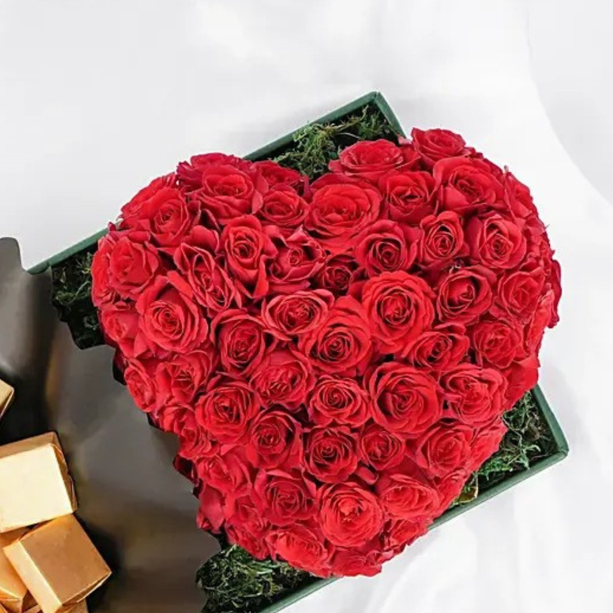 Crafted with premium handpicked red and spray roses, this luxurious floral arrangement is designed in an elegant heart shape to symbolize passion and devotion.