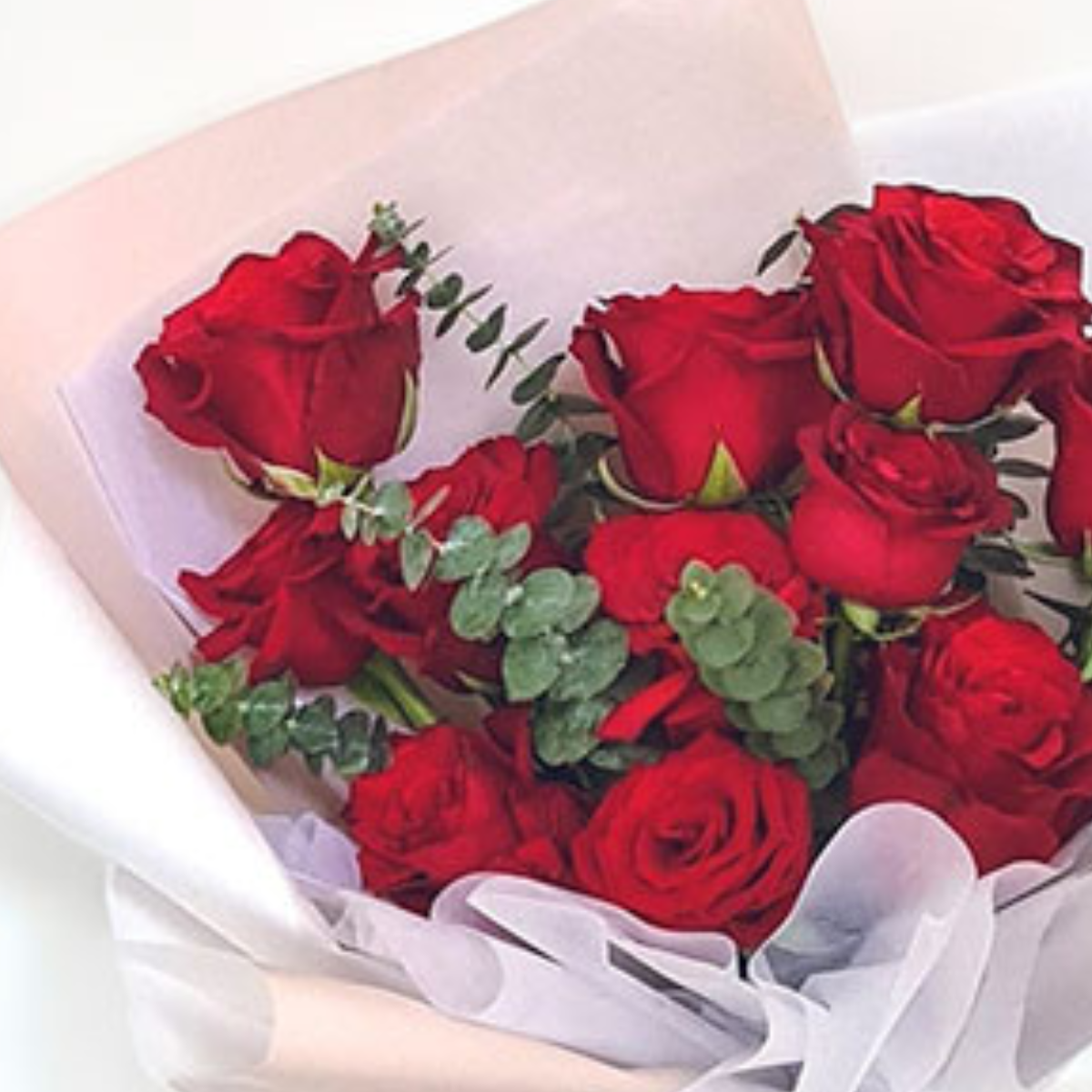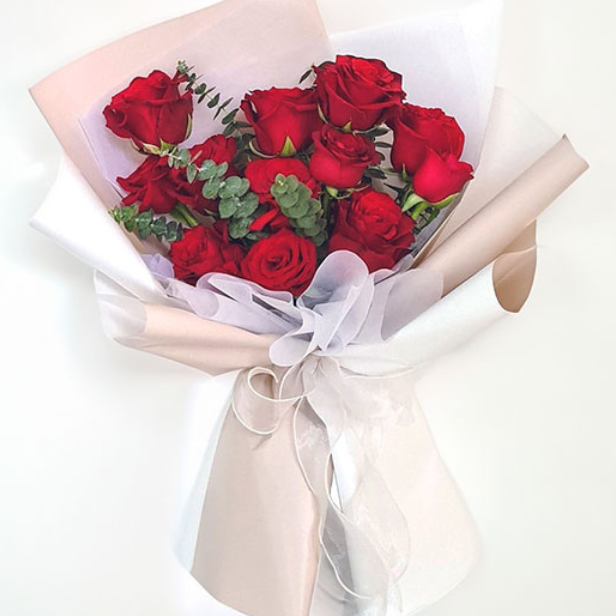 Declare your passion with our ‘Passionate Scarlet Bouquet,’ showcasing 12 stunning Red Roses complemented by a gentle touch of 5 fragrant Eucalyptus stems. This arrangement is a symbol of deep love and intense emotions, where the rich red hues of the roses blend seamlessly with the refreshing scent of eucalyptus. Ideal for expressing romantic sentiments, celebrating love, or elevating any occasion with a bold and enchanting display. Immerse yourself in the passionate allure of the Scarlet Bouquet, where each rose and eucalyptus leaf resonates with the intensity of heartfelt emotions.