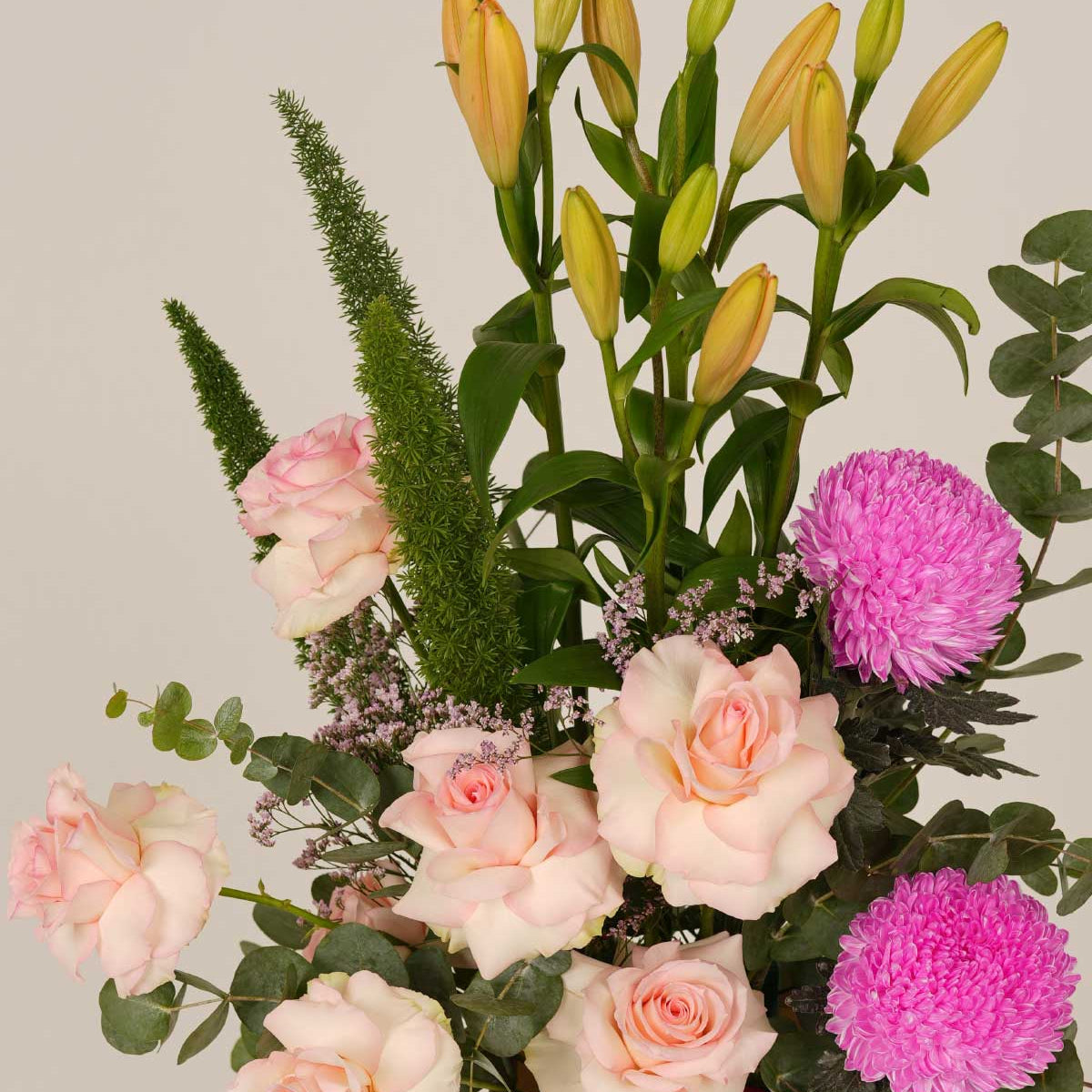Display your bouquet away from direct sunlight, heat, or cooling vents to extend freshness.