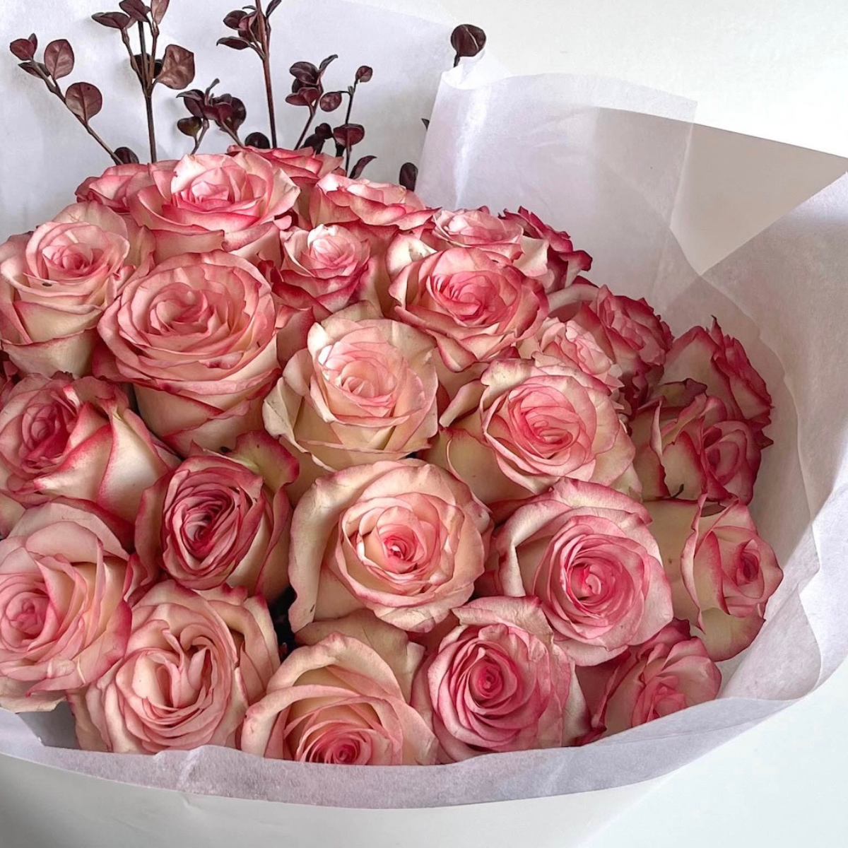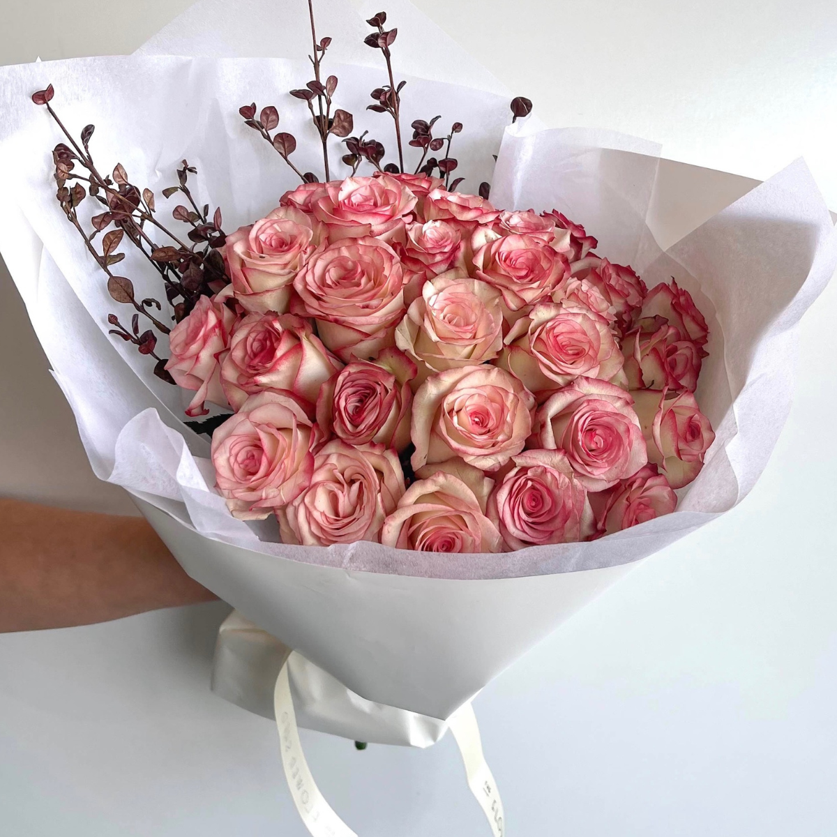 A stunning display of abundant beauty. These luxurious pink roses, grouped together in a voluminous bouquet, create an impressive visual treat that captures the essence of love, romance, and elegance. Perfect Valentines Day or as a special gift to mark a memorable day.