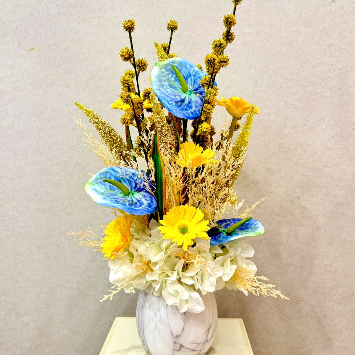The Blue Anthurium is a rare and exotic flower featuring vibrant blue petals that add elegance and sophistication to any space. Known for its low-maintenance care, this stunning bloom is perfect for home decor, offices, and special occasions. Bring a touch of tropical beauty into your life with this long-lasting, unique flower.
