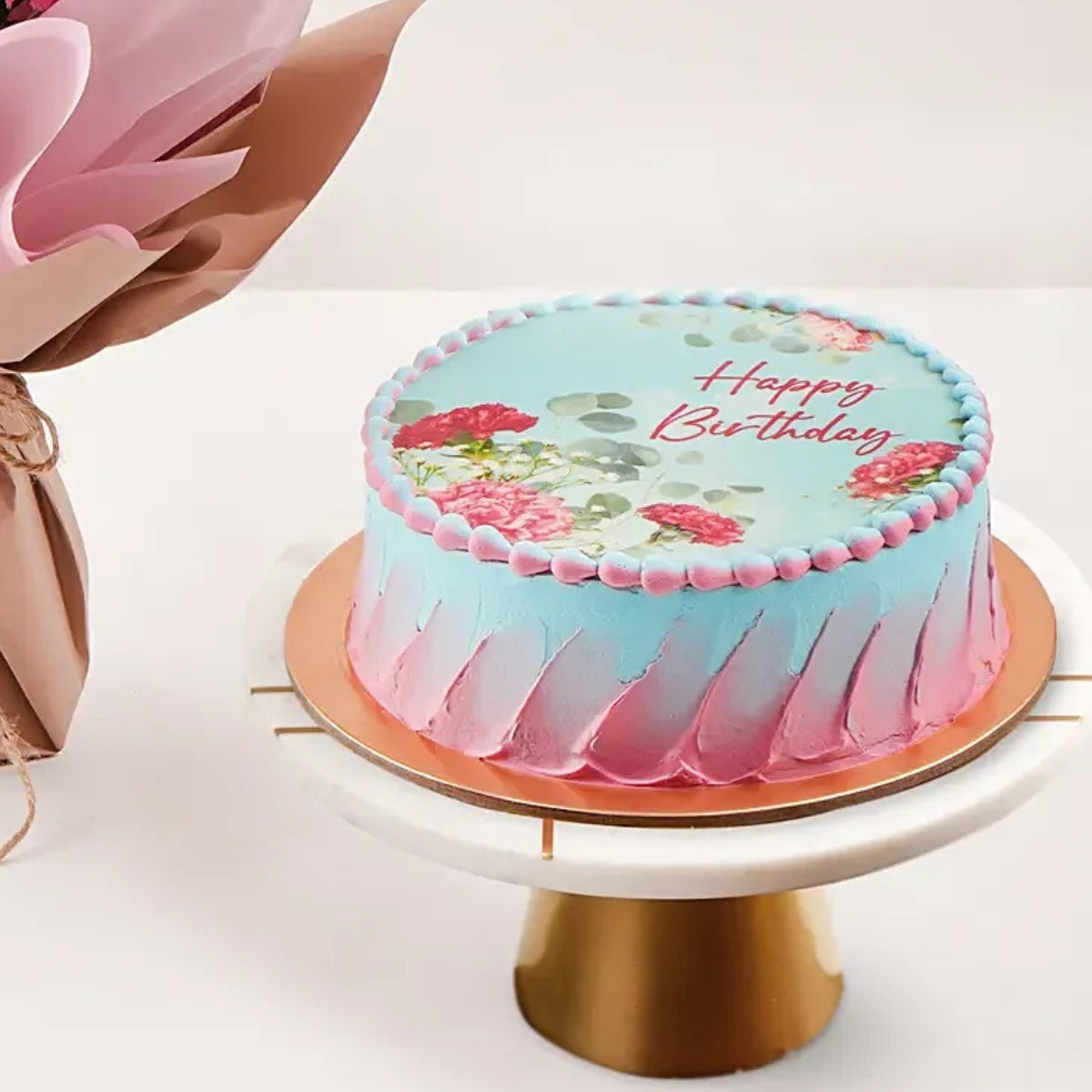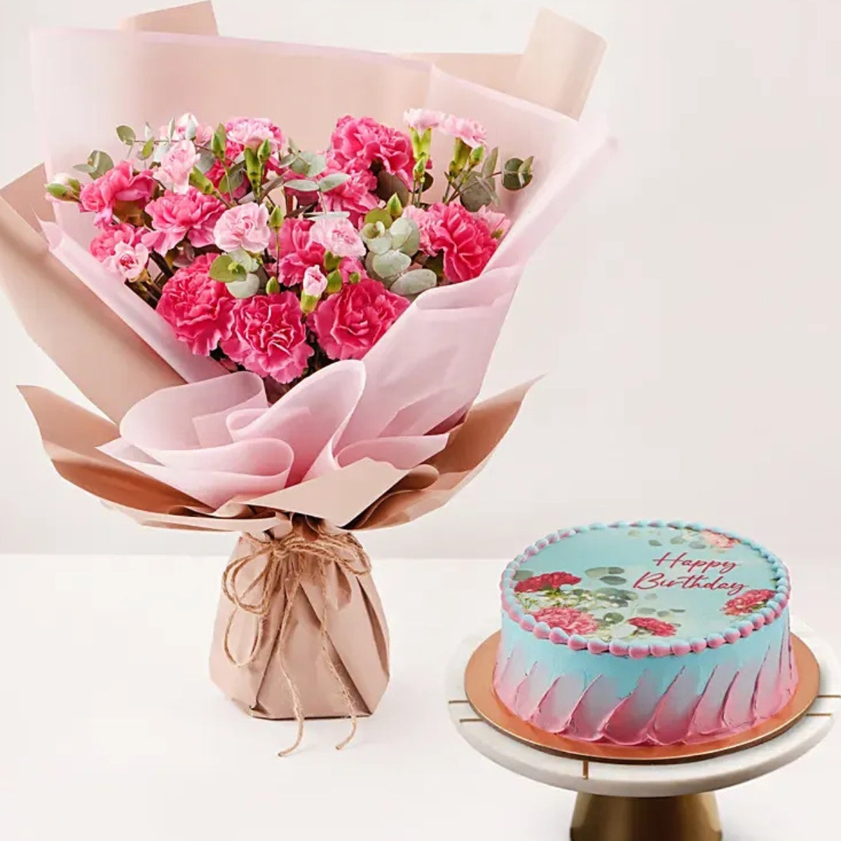 Birthday Wish Carnations Bouquet With Cake