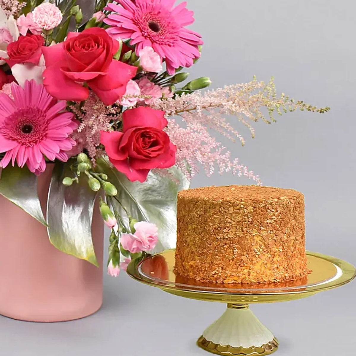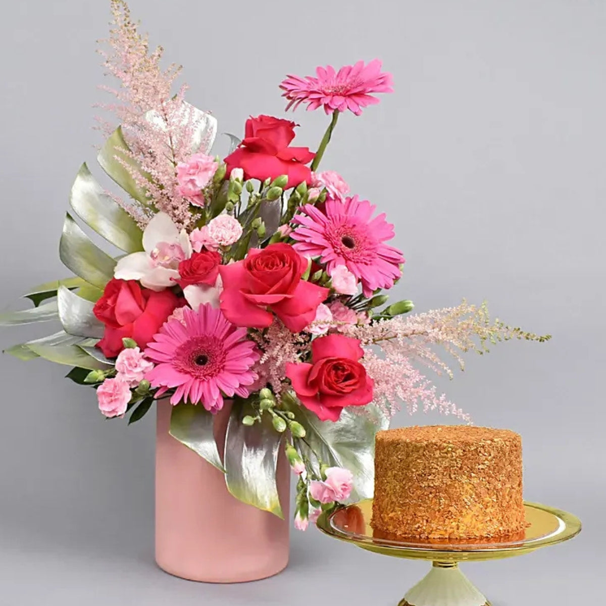 Magical grace flowers arrangement with cake