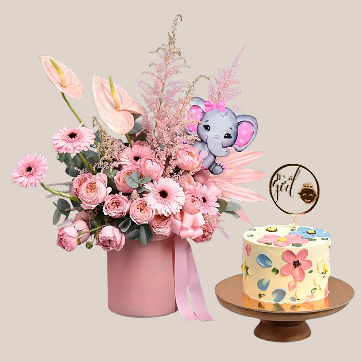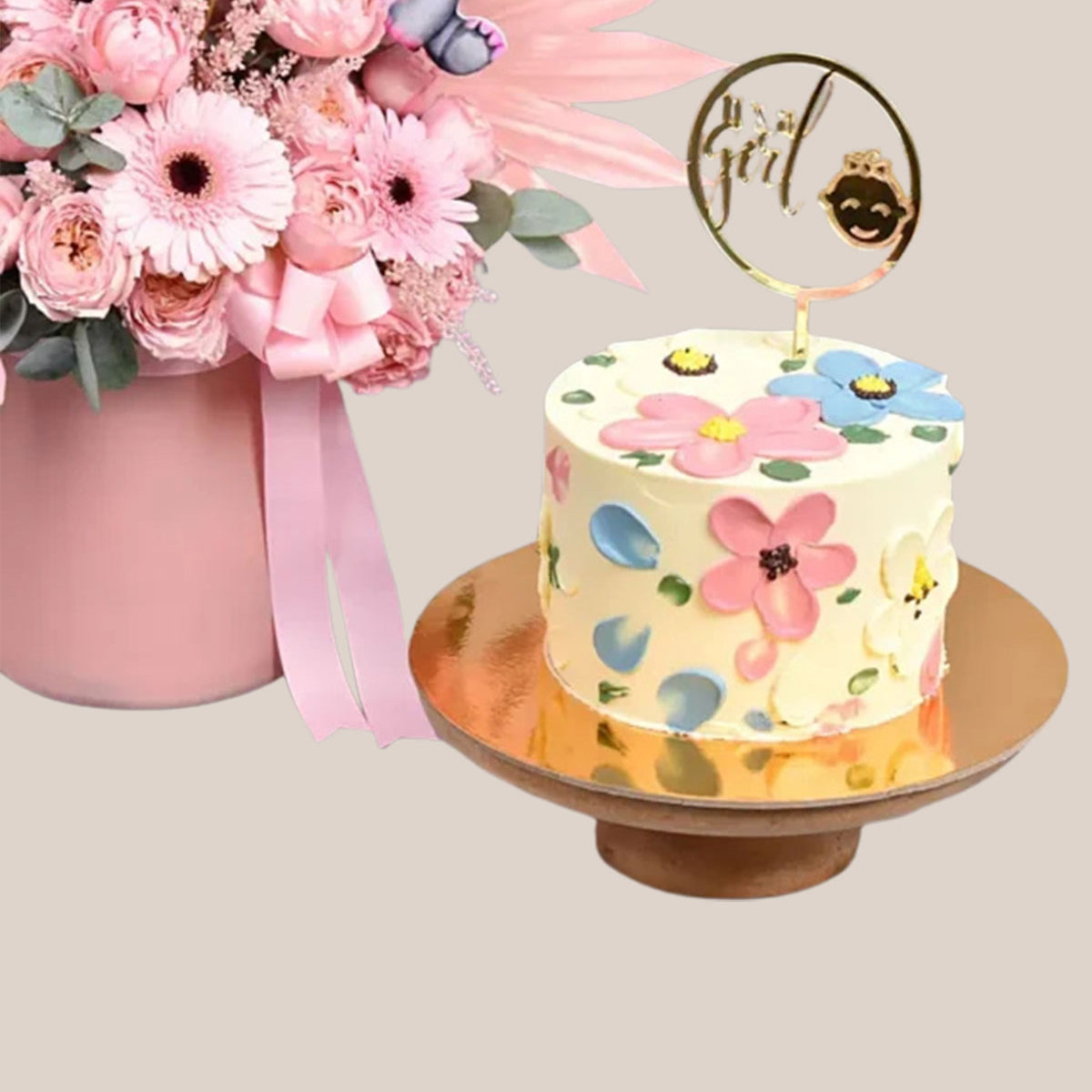 New Born Girl Flowers And Cake