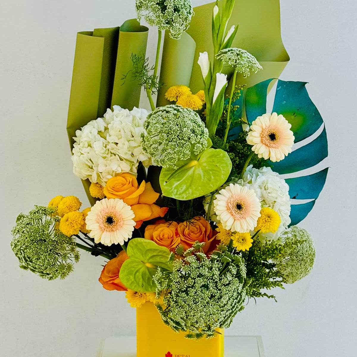 All bouquet orders of AED 100 or more qualify for free standard delivery within Dubai.For custom floral arrangements or premium add-ons (such as luxury wrapping, personalized notes, or special vase selections), please allow up to 2 hours for preparation before dispatch.