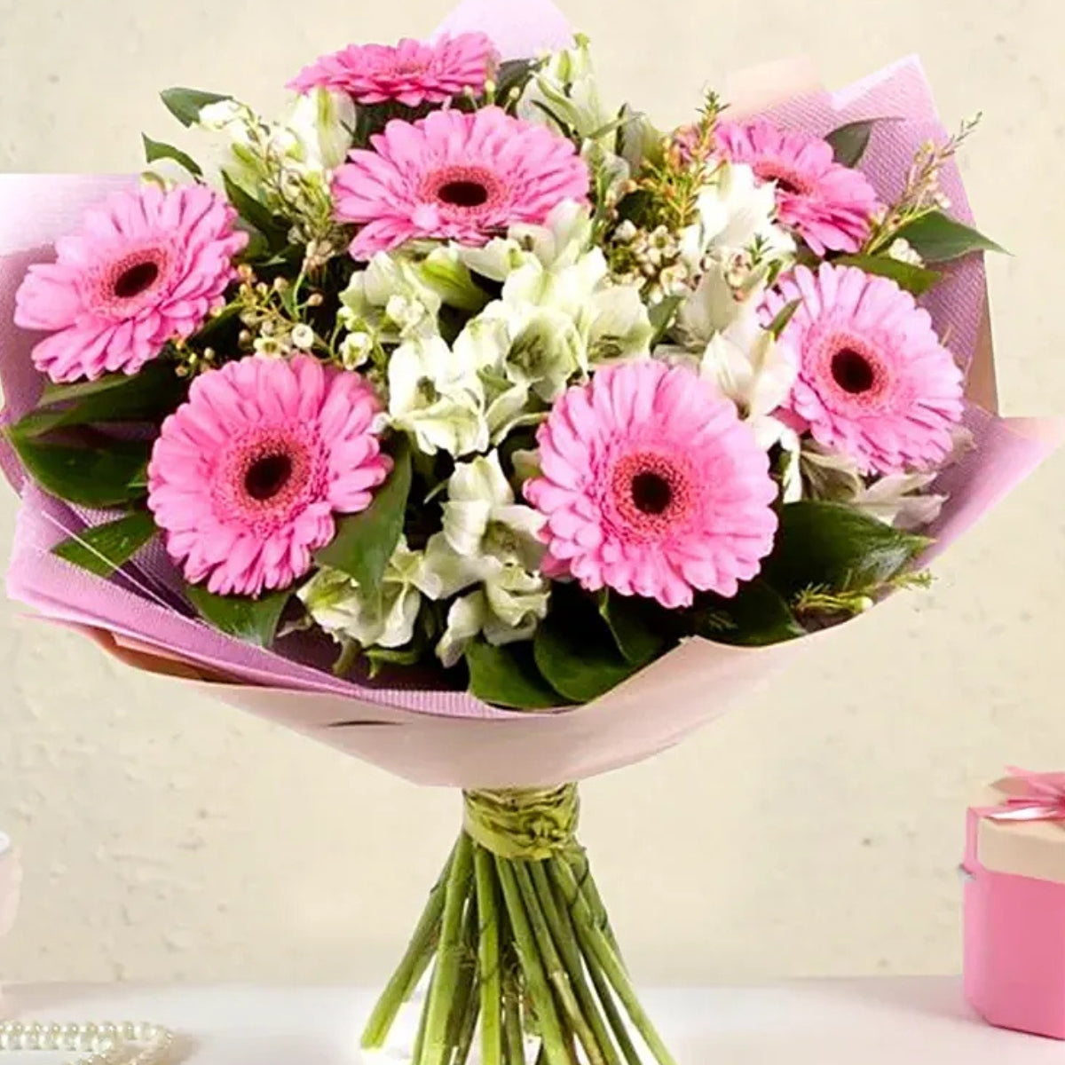 This beautifully tied flower bouquet is a delightful expression of your feelings and all things beautiful associated with it. Gift this impeccably crafted floral bouquet to convey what you wish to a dear one.