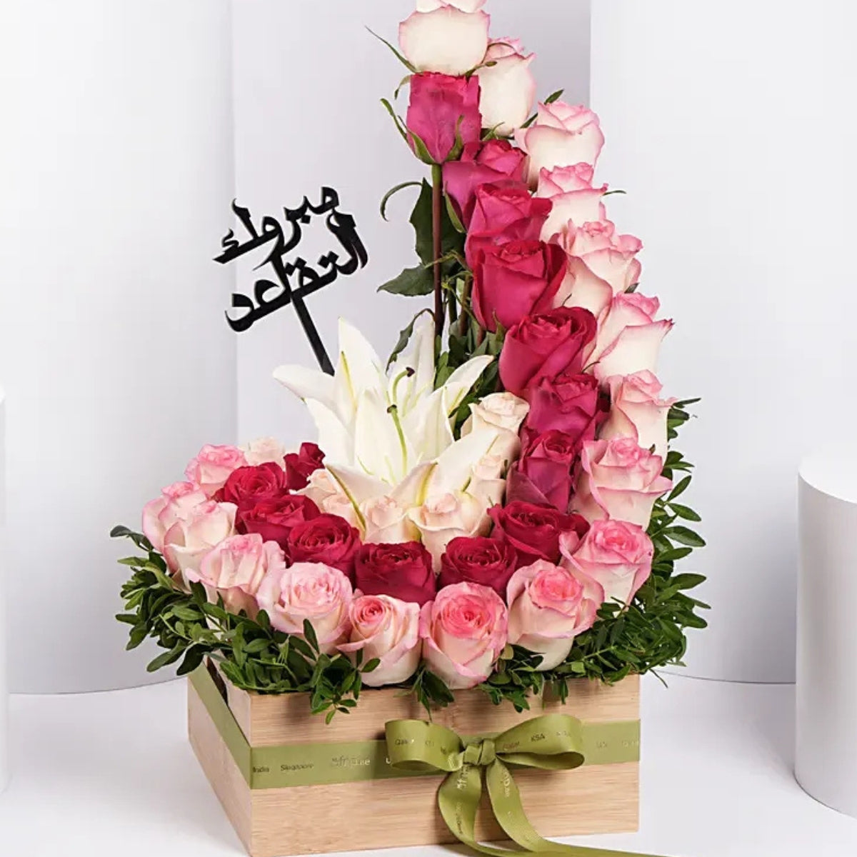 The pink and red roses formed a graceful crescent, symbolizing the journey of love — from soft beginnings to deep, passionate bonds. Each rose was selected not just for its beauty, but for what it represented: tenderness, admiration, and enduring love.