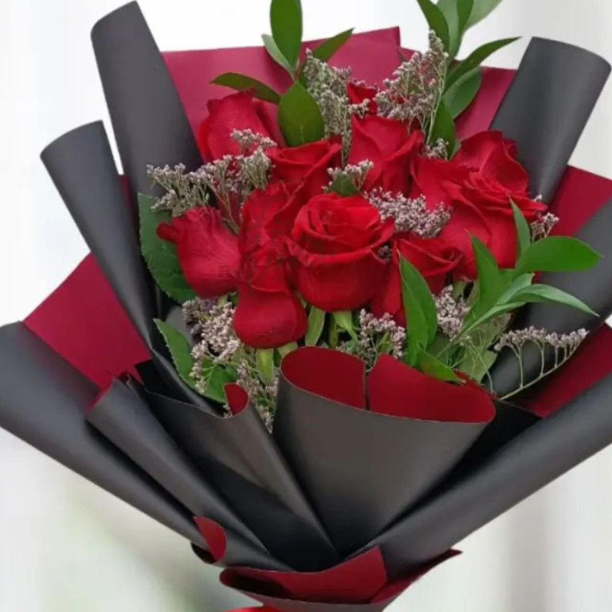 • Handpicked Flower Bouquet – 10 Red Roses with Green Euclyptus