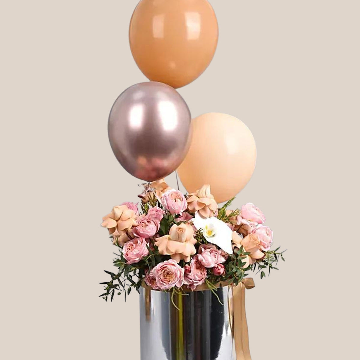 Flowers And Balloons in Silver Box